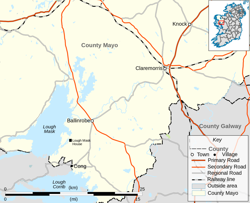 Then in 1873 he received an offer from Lord Eme to become agent for some 1,500 acres of land he owned…. Lord Eme was an extremely wealthy landowner in the area…. Boycott moved to Lough Mask House, around 4 miles from Ballinrobe, County Mayo and situated on a 629 acre farm which he leased from Lord Eme…. The farm came with a yard, stables, a ruined castle, two islands and a boat house…. He employed labourers to work his farm and collected rent, on which he received 10% commission, from the 35 tenant farmers on Lord Eme’s surrounding land….