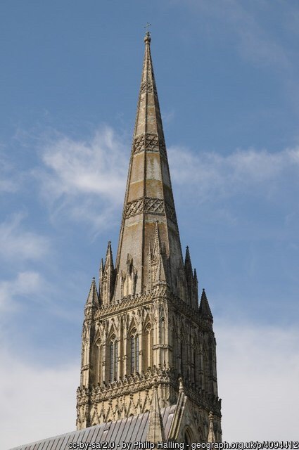 The spire was added between 1300 and 1320….Its height was not unusual at that time – the old St. Paul’s in London and Lincoln Cathedral both had spires even taller…. However, being made from timber and lead neither lasted; Salisbury is now the only one surviving and since the late 1500s has been the tallest in Britain….