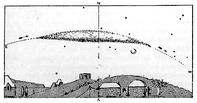 Maunder was later to describe the experience in the June 1883 edition of The Observatory publication – of which he was editor…. He referred to the sighting as an ‘auroral beam’ and a ‘strange celestial visitor’…. As there had been intense auroral activity at the time it was assumed the UFO was connected to that…. He never witnessed anything like it again….
