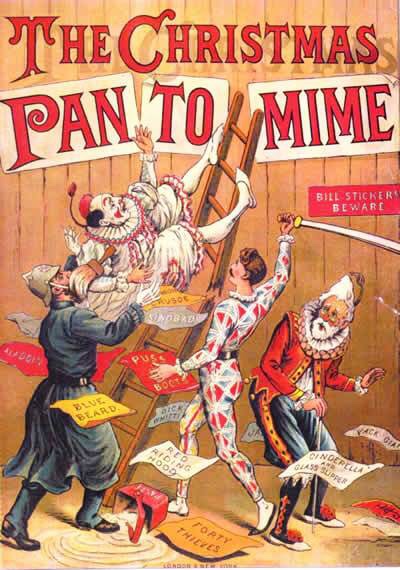 img_4980 The Christmas Pantomime colour lithograph book cover, 1890 – showing harlequinade characters – Wetman on en. Wikipedia – Public domain