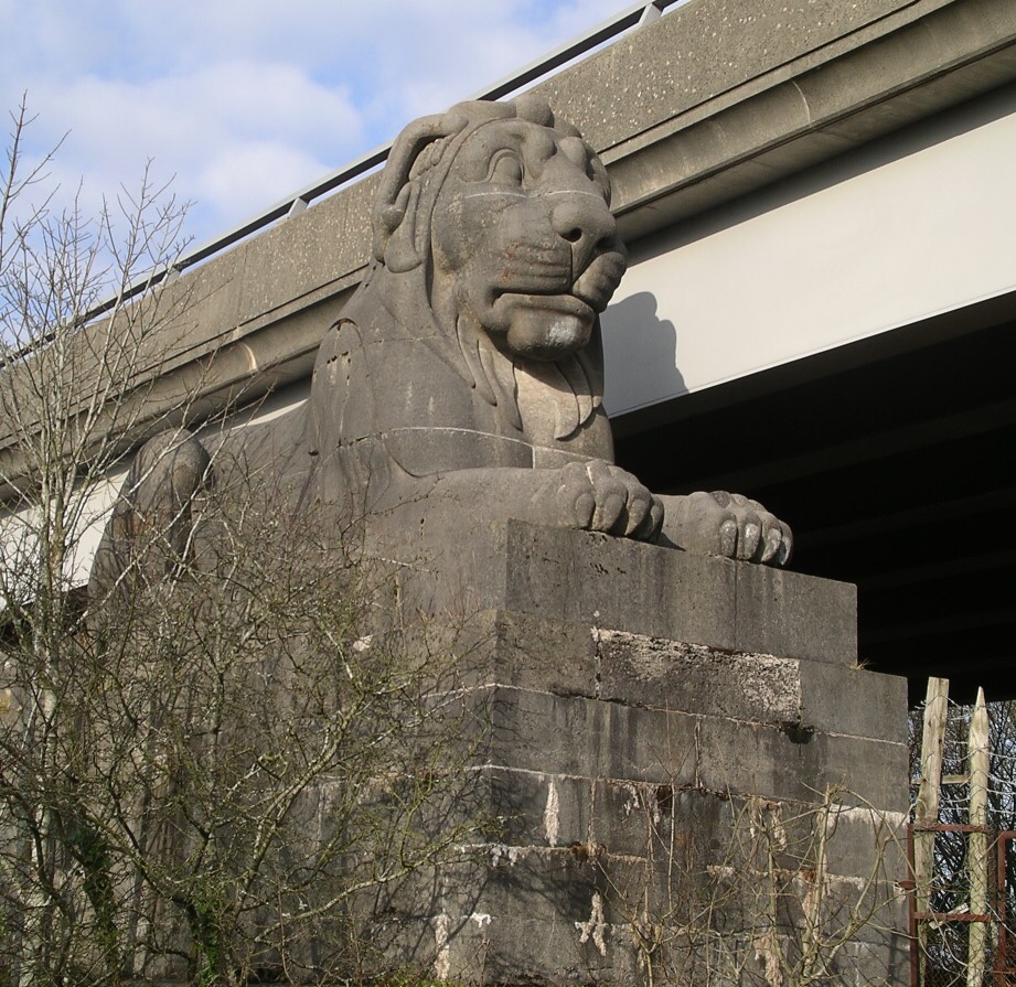 The bridge was decorated by four large limestone lion sculptures by John Thomas – two at each end…. Local poet John Evans wrote “Four fat lions, Without any hair, Two on this side, And two over there”…. And for 120 years those four lions oversaw the save passage of travellers across the Menai Strait….